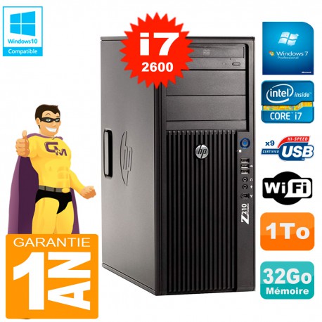 PC HP WorkStation Z210 Tour Core i7-2600 RAM 32Go 1To Graveur DVD Wifi W7