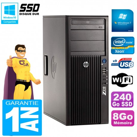 PC HP WorkStation Z210 Tour - Intel Xeon E3-1240 3.3 Ghz (Cache 8 Mo) - 8 Go DDR3 - Disque Dur SSD 240 Go - Graveur DVD - Clé WIFI USB - Windows 7 Pro - Garantie 1 an