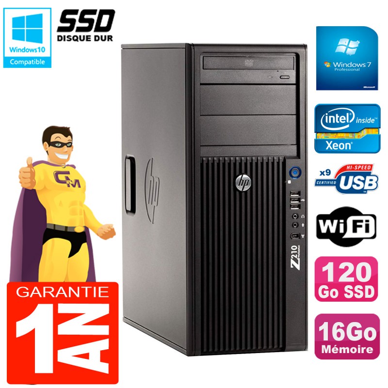 PC HP WorkStation Z210 Tour - Intel Xeon E3-1240 3.3 Ghz (Cache 8 Mo) - 16 Go DDR3 - Disque Dur SSD 120 Go - Graveur DVD - Clé WIFI USB - Windows 7 Pro - Garantie 1 an