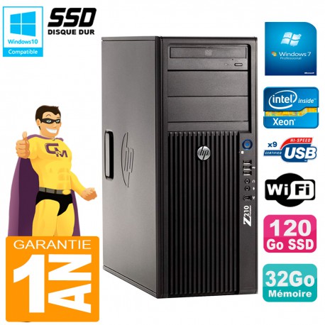 PC HP WorkStation Z210 Tour Xeon E3-1240 RAM 32Go SSD 120Go Graveur DVD Wifi W7
