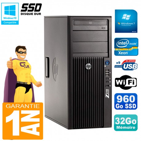 PC HP WorkStation Z210 Tour - Intel Xeon E3-1240 3.3 Ghz (Cache 8 Mo) - 32 Go DDR3 - Disque Dur SSD 960 Go - Graveur DVD - Clé WIFI USB - Windows 7 Pro - Garantie 1 an