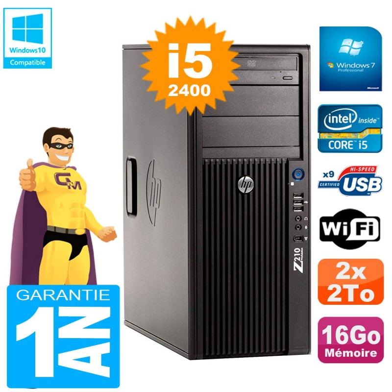 PC HP WorkStation Z210 Tour Core i5-2400 RAM 16Go 2 x 2To Graveur DVD Wifi W7