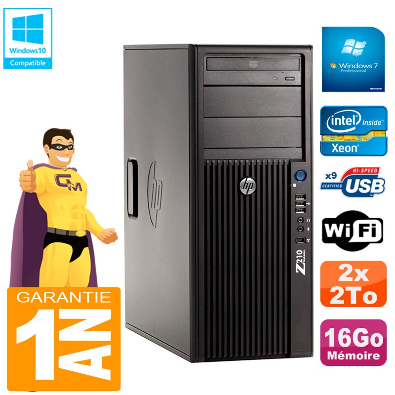 PC HP WorkStation Z210 Tour Xeon E3-1240 RAM 16Go 2 x 2To Graveur DVD Wifi W7