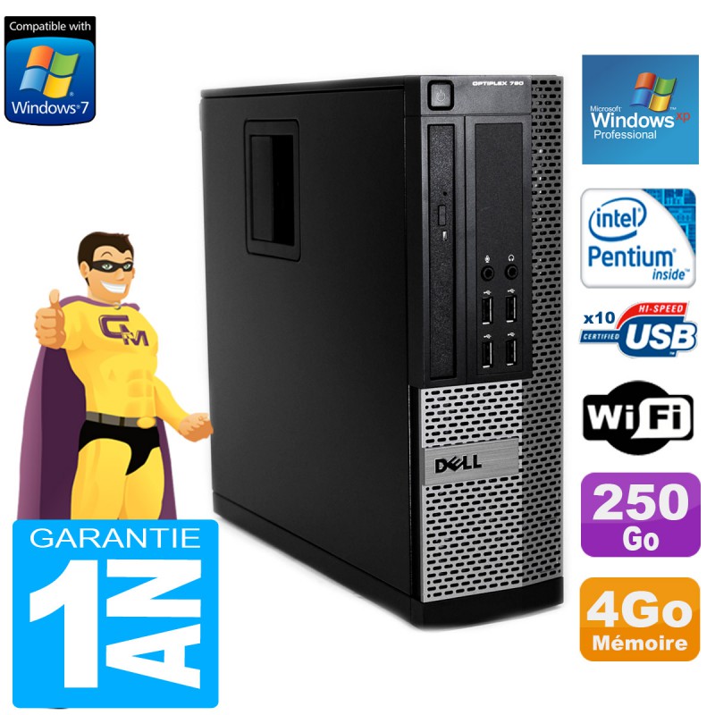 PC Dell 790 SFF - Intel Pentium G630 2,7GHz - 4 Go DDR3 - Disque Dur 250 Go - Lecteur DVD - Clé WIFI USB - Windows XP Pro - Garantie = 1 an.