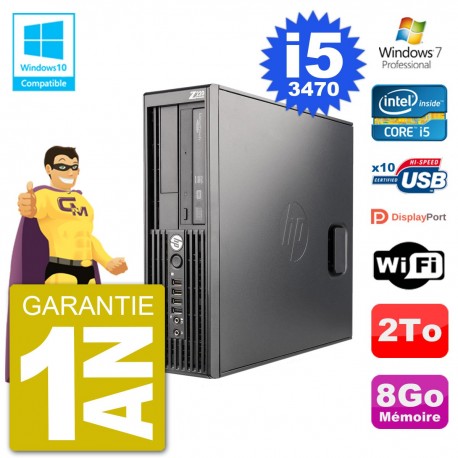 PC HP WorkStation Z220 SFF - Intel Core I5-3470 3.2 Ghz (Cache 6 Mo) - 8 Go DDR3 - Disque Dur 3,5" 2 To - Graveur DVD - Clé WIFI USB - Windows 7 Pro - Garantie 1 an.