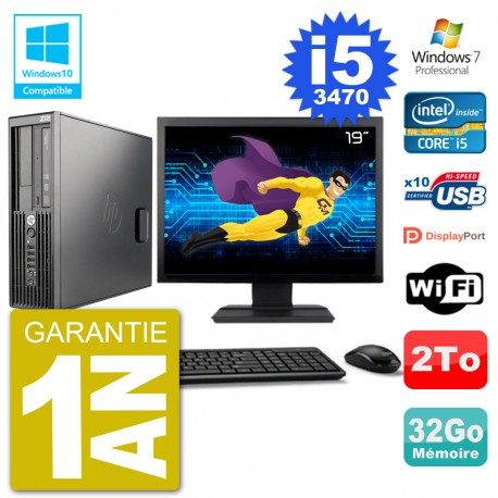 PC HP Z220 SFF Ecran 19" Core i5-3470 RAM 32Go Disque 2To Graveur DVD Wifi W7