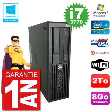 PC HP WorkStation Z220 SFF - Intel Core I7-3770 3.4 Ghz (Cache 8 Mo) - 8 Go DDR3 - Disque Dur 3,5" 2 To - Graveur DVD - Clé WIFI USB - Windows 7 Pro - Garantie 1 an.
