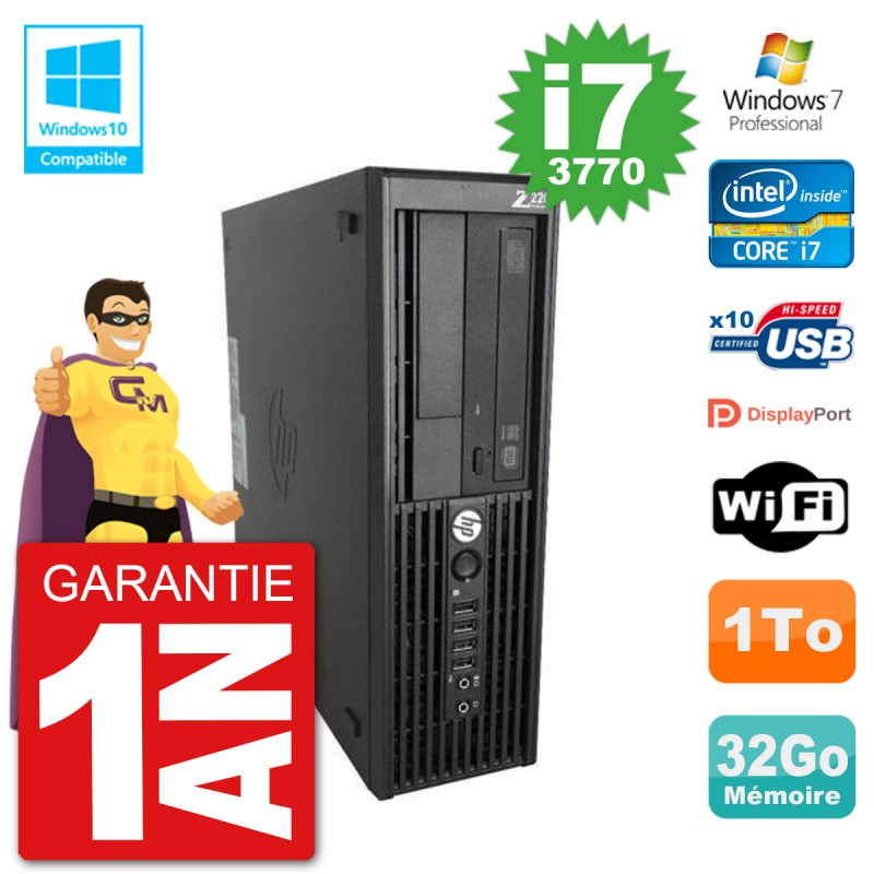 PC HP WorkStation Z220 SFF Core i7-3770 RAM 32Go Disque 1To Graveur DVD Wifi W7