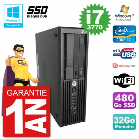 PC HP WorkStation Z220 SFF Core i7-3770 RAM 32Go SSD 480Go Graveur DVD Wifi W7