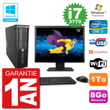 PC HP Z220 SFF Ecran 19" Core i7-3770 RAM 8Go Disque 1To Graveur DVD Wifi W7