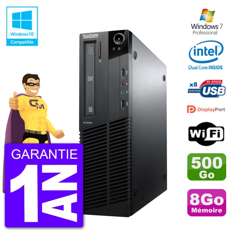 PC Lenovo ThinkCentre M82 SFF - Intel Pentium Dual Core G640 2.8 Ghz (3 Mo) - 8 Go DDR3 - Disque Dur 3,5" 500 Go - Graveur DVD - Clé WIFI USB - Windows 7 Pro - Garantie 1 an