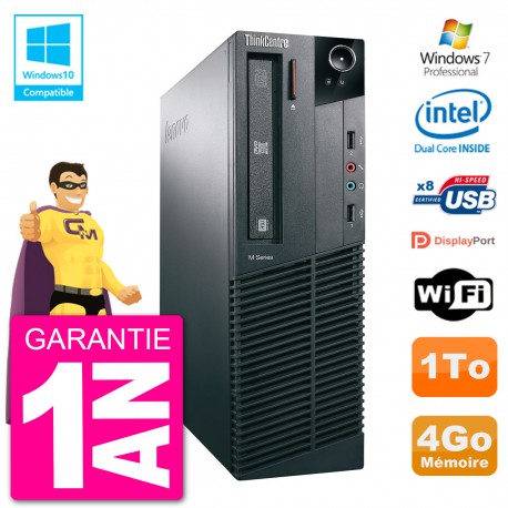 PC Lenovo ThinkCentre M82 SFF - Intel Pentium Dual-Core G2020 2.9 Ghz (3 Mo) - 4 Go DDR3 - Disque Dur 3,5" 1 To - Graveur DVD - Clé WIFI USB - Windows 7 Pro - Garantie 1 an