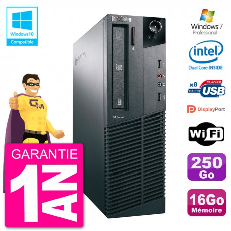 PC Lenovo ThinkCentre M82 SFF G2020 RAM 16Go Disque Dur 250Go Graveur DVD Wifi W7
