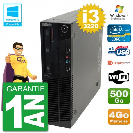 PC Lenovo ThinkCentre M82 SFF i3-3220 RAM 4Go Disque 500Go Graveur DVD Wifi W7