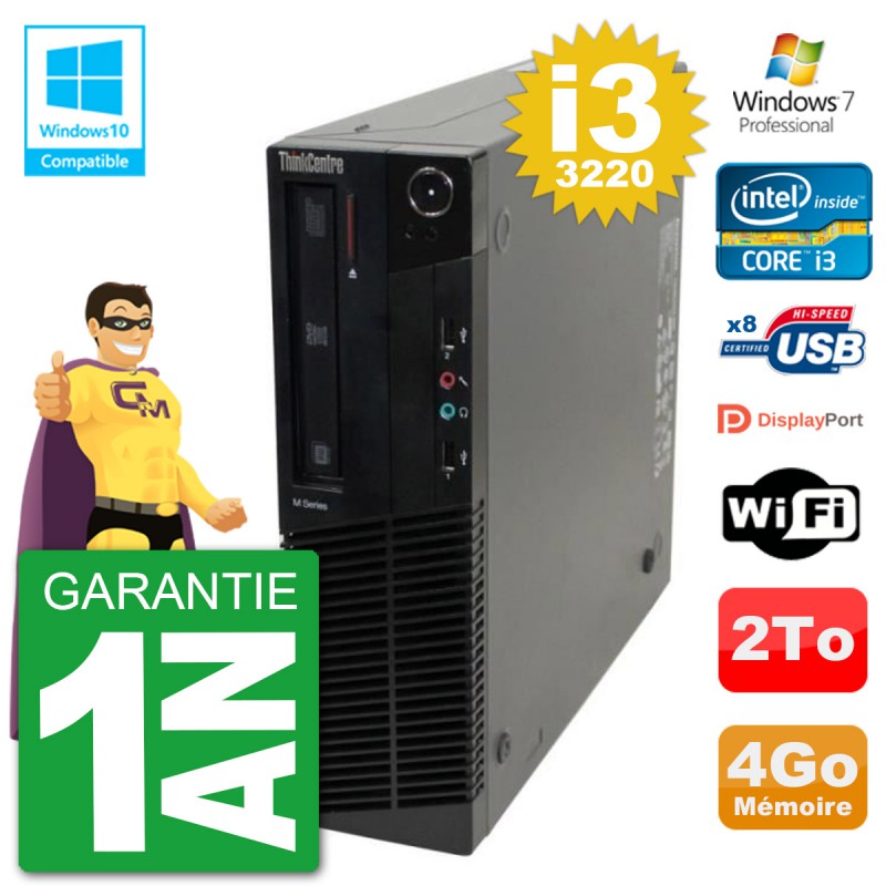 PC Lenovo ThinkCentre M82 SFF i3-3220 RAM 4Go Disque Dur 2To Graveur DVD Wifi W7