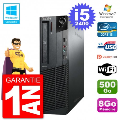 PC Lenovo ThinkCentre M82 SFF i5-2400 RAM 8Go Disque 500Go Graveur DVD Wifi W7