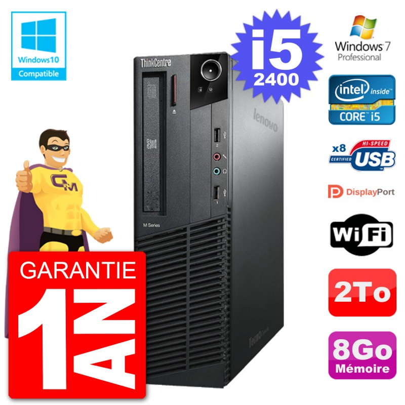 PC Lenovo ThinkCentre M82 SFF - Intel Core I5-2400 3.1 Ghz (6 Mo) - 8 Go DDR3 - Disque Dur 3,5" 2 To - Graveur DVD - Clé WIFI USB - Windows 7 Pro - Garantie 1 an.