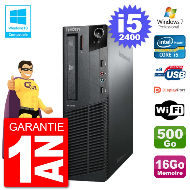 PC Lenovo ThinkCentre M82 SFF i5-2400 RAM 16Go Disque 500Go Graveur DVD Wifi W7
