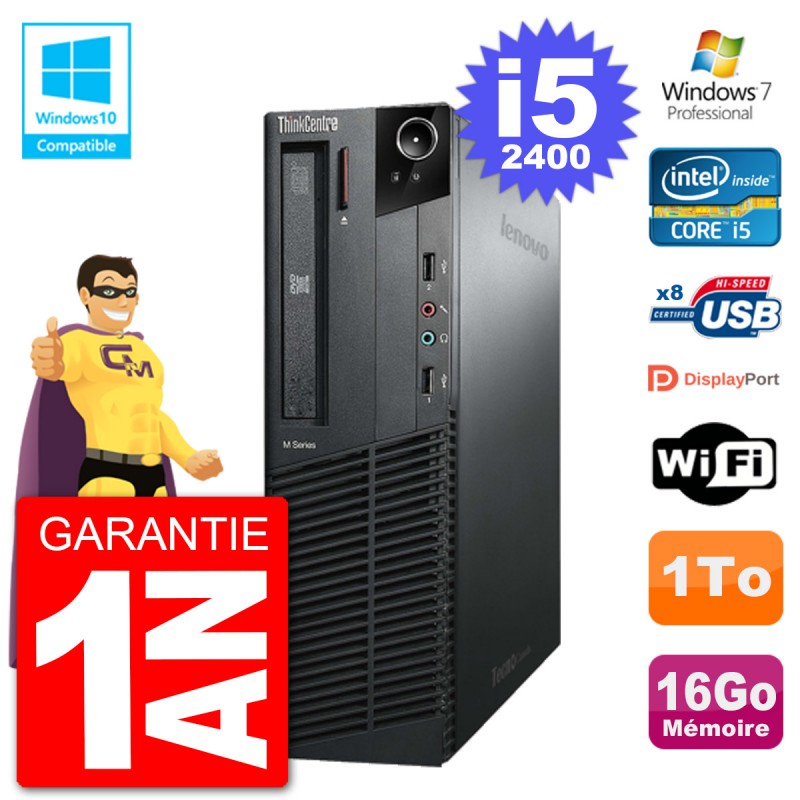 PC Lenovo ThinkCentre M82 SFF i5-2400 RAM 16Go Disque 1To Graveur DVD Wifi W7