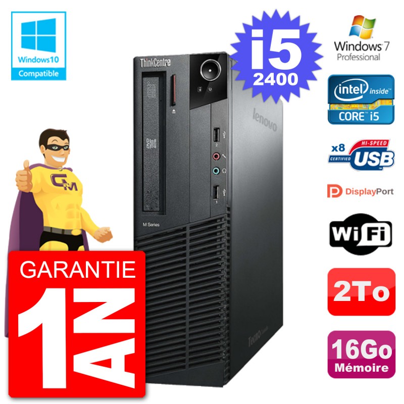 PC Lenovo ThinkCentre M82 SFF - Intel Core I5-2400 3.1 Ghz (6 Mo) - 16 Go DDR3 - Disque Dur 3,5" 2 To - Graveur DVD - Clé WIFI USB - Windows 7 Pro - Garantie 1 an.