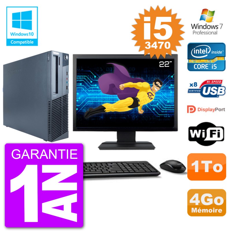 PC Lenovo M82 SFF Ecran 22" i5-3470 RAM 4Go Disque 1To Graveur DVD Wifi W7