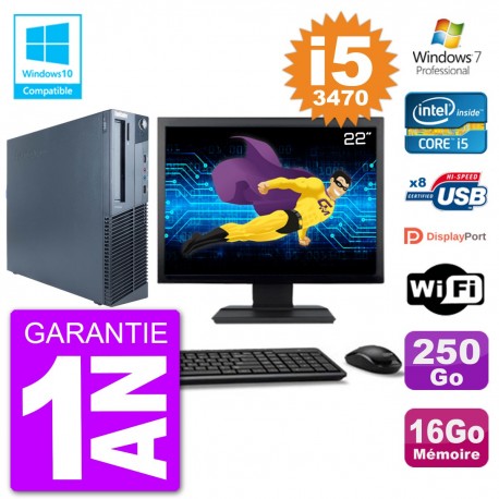 PC Lenovo M82 SFF - Intel Core I5-3470 3.2 Ghz (6 Mo) - 16 Go DDR3 - Disque Dur 3,5" 250 Go - Graveur DVD - Clé WIFI USB - Windows 7 Pro - Livré avec Ecran 22" + clavier + souris (Marques et modèles variables) - Garantie 1 an.