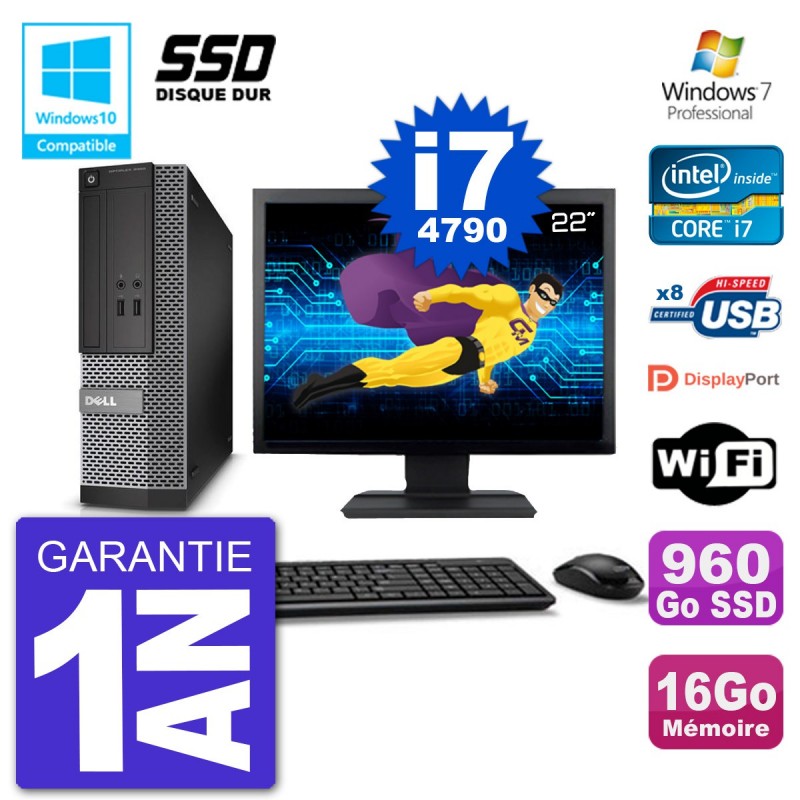 PC Dell 3020 SFF Ecran 22" Intel i7-4790 RAM 16Go SSD 960Go Graveur DVD Wifi W7