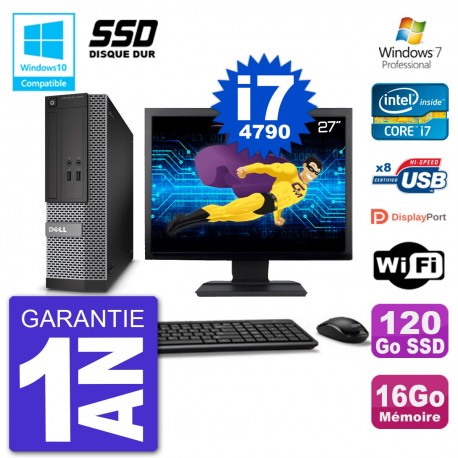 PC Dell Optiplex 3020 SFF - Intel Core i7-4790 3.6 Ghz (Cache 8 Mo) - 16 Go DDR3 - Disque Dur SSD 120 Go - Graveur DVD - Clé WIFI USB - Windows 7 Pro - Livré avec Ecran 27" + clavier + souris (Marques et modèles variables) - Garantie 1 an