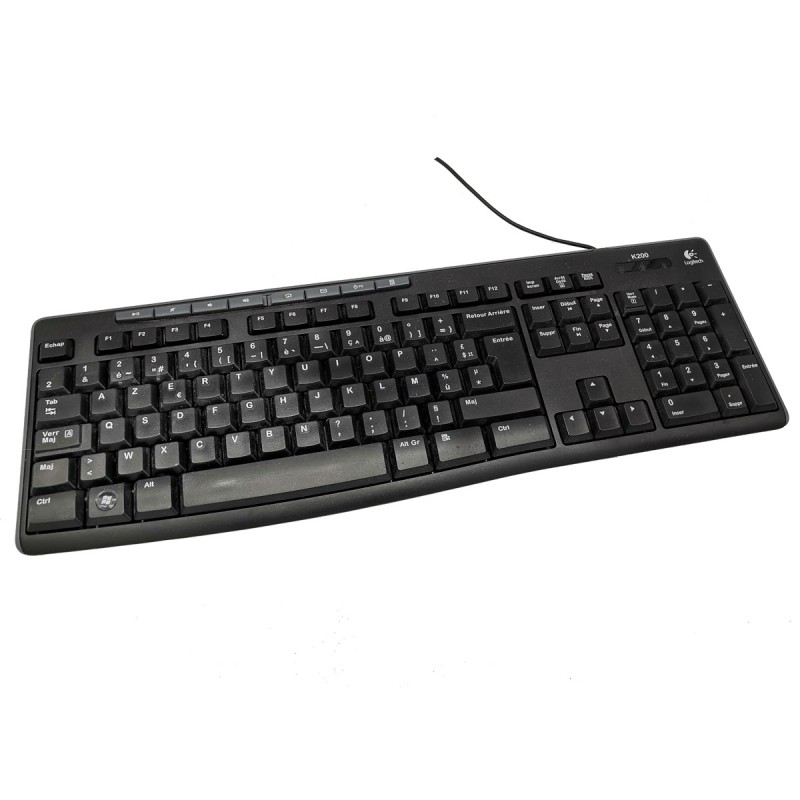 Clavier filaire pour PC USB - Logitech - Modèle K200 / Y-U0011 - P/N 820-003155 - AZERTY - 112 Touches - Couleur Noir / Gris - Garantie 6 mois.