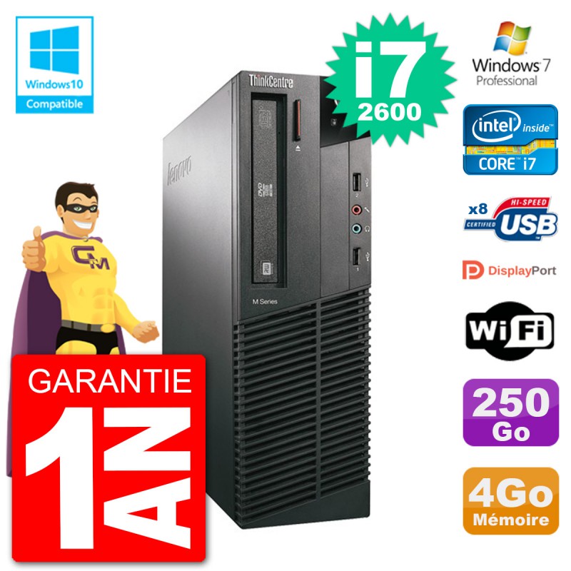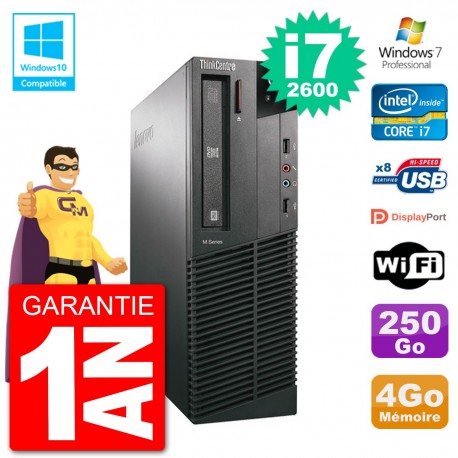 PC Lenovo ThinkCentre M82 SFF - Intel Core I7-2600 3.4 Ghz (8 Mo) - 4 Go DDR3 - Disque Dur 3,5" 250 Go - Graveur DVD - Clé WIFI USB - Windows 7 Pro - Garantie 1 an.