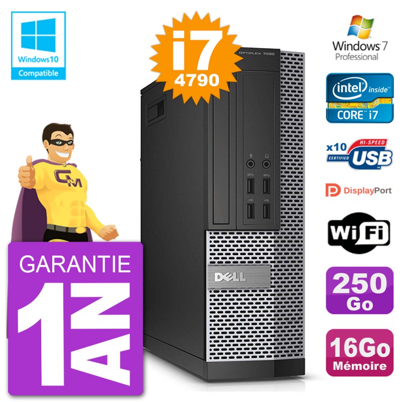 PC Dell 7020 SFF Intel i7-4790 RAM 16Go Disque 250Go Graveur DVD Wifi W7