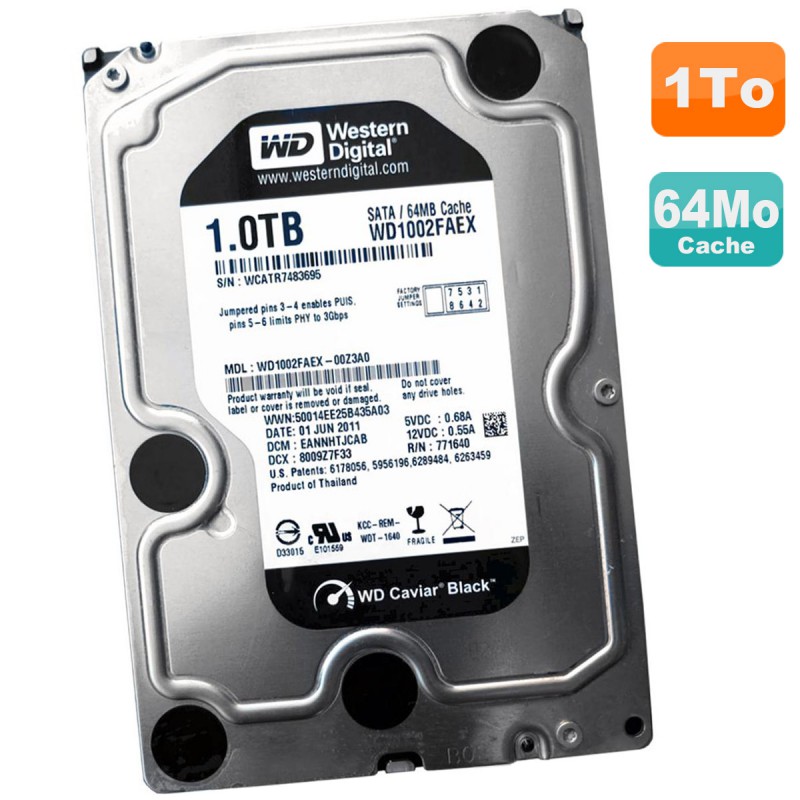 Disque Dur 1To 3.5" SATA WD Caviar Black WD1002FAEX-00Z3A0 64Mo