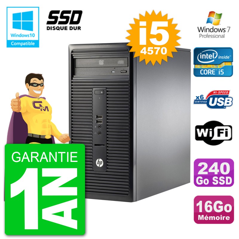 PC HP 280 G1 MT Core I5-4570 RAM 16Go Disque 240 Go SSD Graveur DVD Wifi W7
