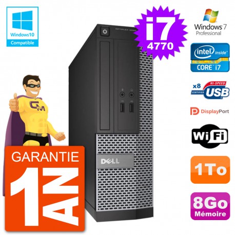 PC Dell Optiplex 3020 SFF - Intel Core i7-4770 3.4 Ghz (Cache 8 Mo) - 8 Go DDR3 - Disque Dur 3,5" 1 To - Graveur DVD - Clé WIFI USB - Windows 7 Pro - Garantie 1 an