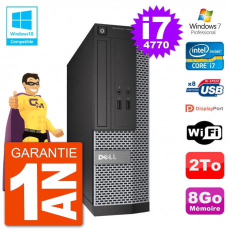 PC Dell Optiplex 3020 SFF - Intel Core i7-4770 3.4 Ghz (Cache 8 Mo) - 8 Go DDR3 - Disque Dur 3,5" 2 To - Graveur DVD - Clé WIFI USB - Windows 7 Pro - Garantie 1 an