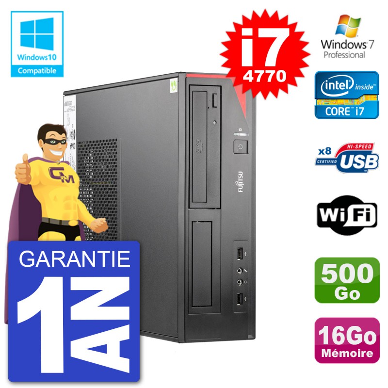 PC Fujitsu Esprimo E520 DT - Intel Core i7-4770 3.4 Ghz (Cache 8 Mo) - 16 Go DDR3 - Disque Dur 3,5" 500 Go - Graveur DVD - Clé WIFI USB - Windows 7 Pro - Garantie 1 an