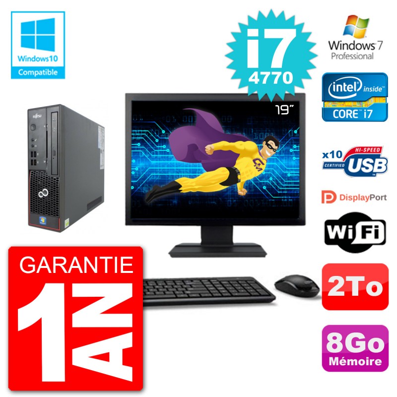 PC Fujitsu Esprimo C720 SFF Ecran 19" i7-4770 8Go Disque 2To Graveur DVD Wifi W7