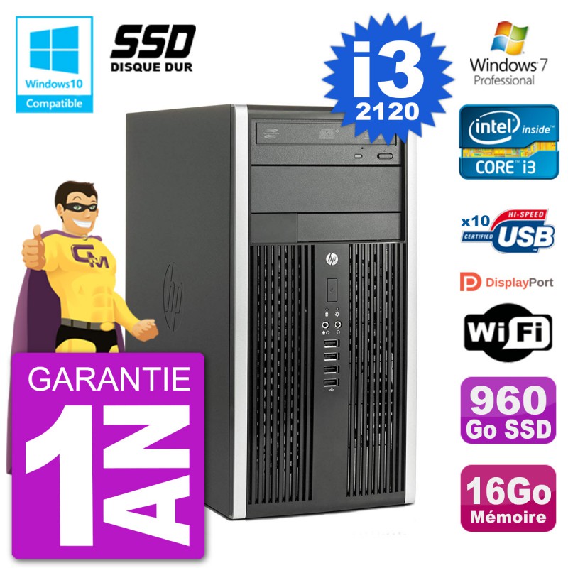 PC HP 6300 MT Intel Core I3-2120 RAM 16Go SSD 960Go Graveur DVD Wifi W7