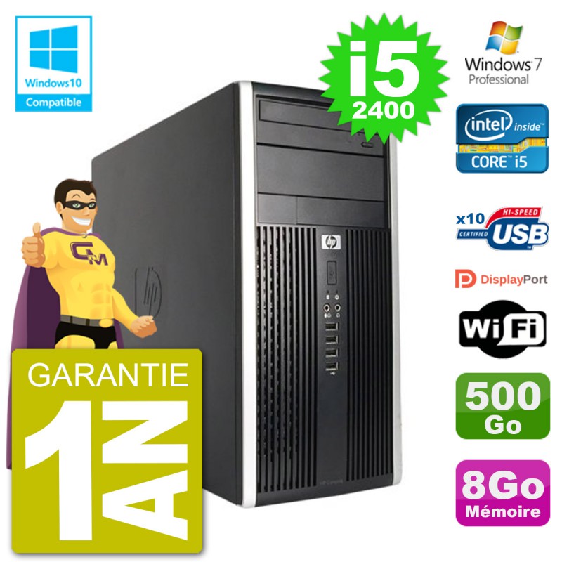 PC HP 6300 MT Intel Core i5-2400 RAM 8Go Disque 500Go Graveur DVD Wifi W7