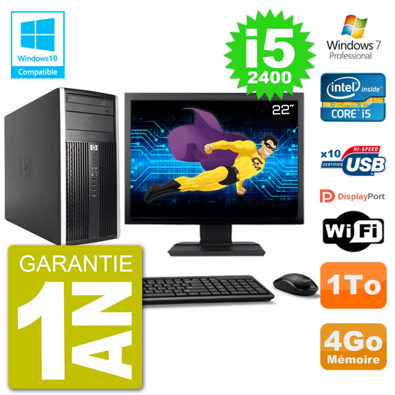 PC HP 6300 MT Ecran 22" Core i5-2400 RAM 4Go Disque 1To Graveur DVD Wifi W7