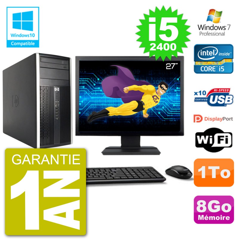 PC HP 6300 MT Ecran 27" Core i5-2400 RAM 8Go Disque 1To Graveur DVD Wifi W7
