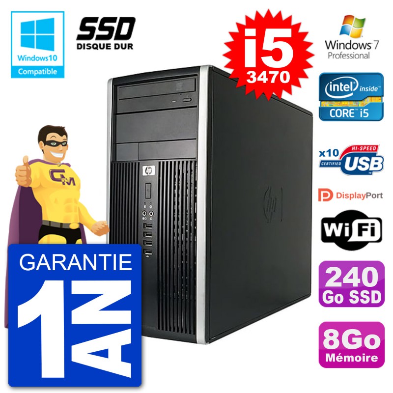 PC HP 6300 MT Intel Core i5-3470 RAM 8Go SSD 240Go Graveur DVD Wifi W7
