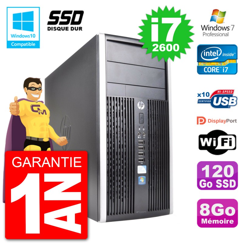 PC HP 6300 MT Intel Core i7-2600 RAM 8Go SSD 120Go Graveur DVD Wifi W7