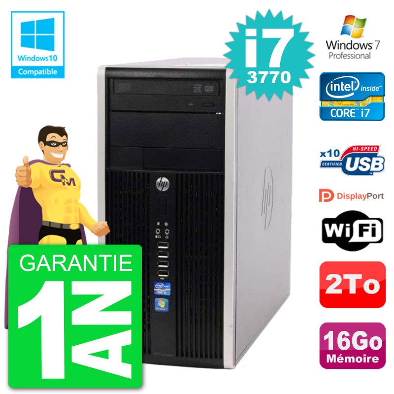 PC HP 6300 MT Intel Core i7-3770 RAM 16Go Disque 2To Graveur DVD Wifi W7