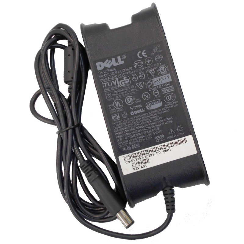 Chargeur pour ordinateur portable Dell - Modèle PA-12 / AA22850 - P/N 0U7088 / 05U092 / 0T2357 / U7088 / 5U092 / T2357 / 022191-00 - 19.5V / 3.34A - Garantie 6 mois.
