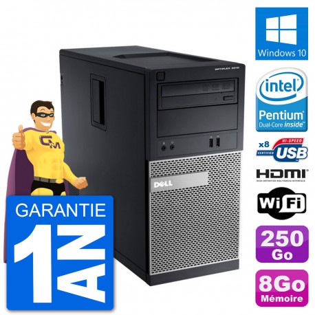 PC Dell OptiPlex 3010 MT - Intel Pentium Dual-Core G2020 2.9 Ghz (3 Mo) - 8 Go DDR3 - Disque Dur 3,5" 250 Go - Graveur DVD - Clef Wifi USB - Windows 10 - Garantie 1 an.
