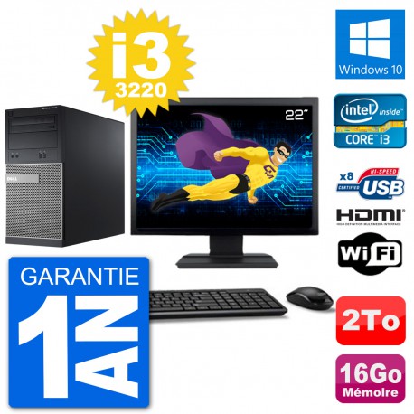 PC Dell 3010 MT - Intel Core i3-3220 3.3 Ghz (3 Mo) - 16 Go DDR3 - Disque Dur 3,5" 2 To - Graveur DVD - Clef Wifi USB - Windows 10 - Livré avec Ecran 22" + clavier + souris (Marques et modèles variables) - Garantie 1 an.