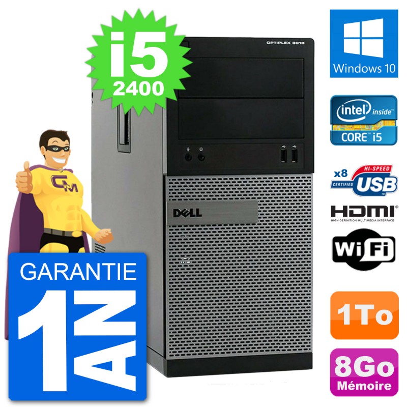 PC Dell OptiPlex 3010 MT - Intel Core i5-2400 3.1 Ghz (6 Mo) - 8 Go DDR3 - Disque Dur 3,5" 1 To - Graveur DVD - Clef Wifi USB - Windows 10 - Garantie 1 an.
