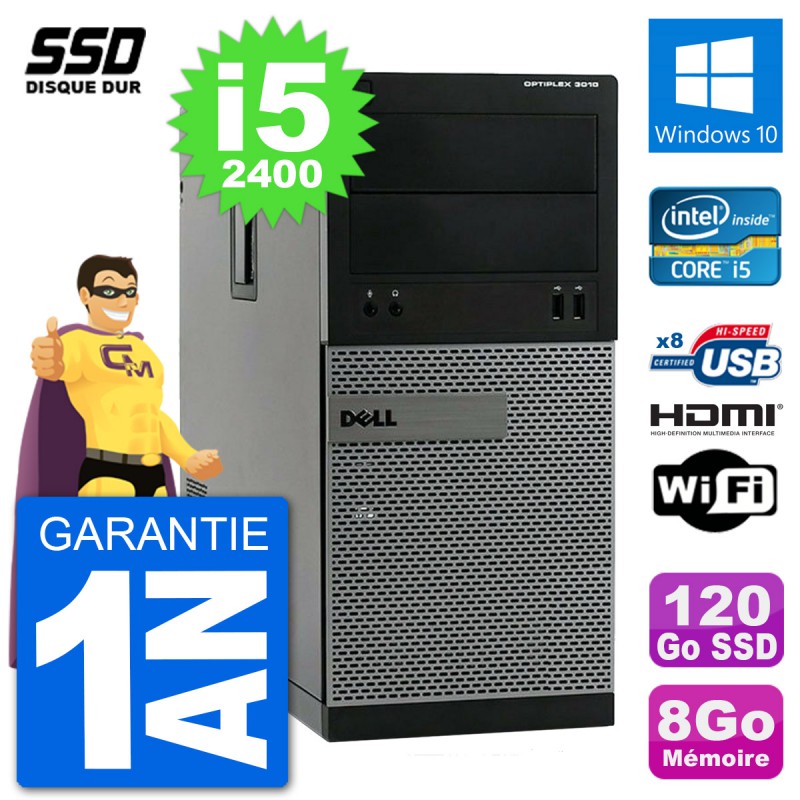 PC Dell OptiPlex 3010 MT - Intel Core i5-2400 3.1 Ghz (6 Mo) - 8 Go DDR3 - Disque Dur SSD 120 Go - Graveur DVD - Clef Wifi USB - Windows 10 - Garantie 1 an.