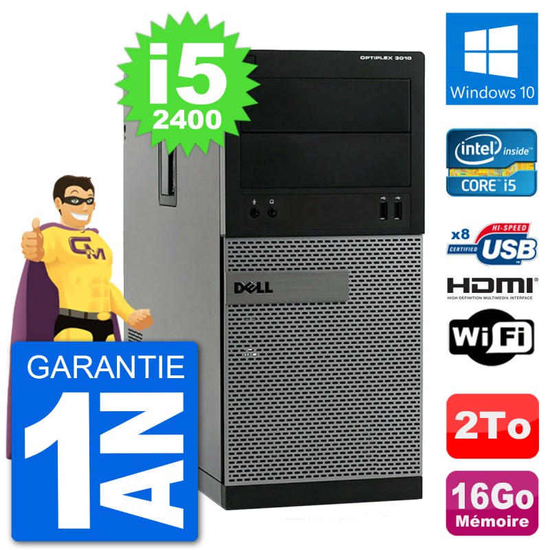 PC Dell OptiPlex 3010 MT - Intel Core i5-2400 3.1 Ghz (6 Mo) - 16 Go DDR3 - Disque Dur 3,5" 2 To - Graveur DVD - Clef Wifi USB - Windows 10 - Garantie 1 an.